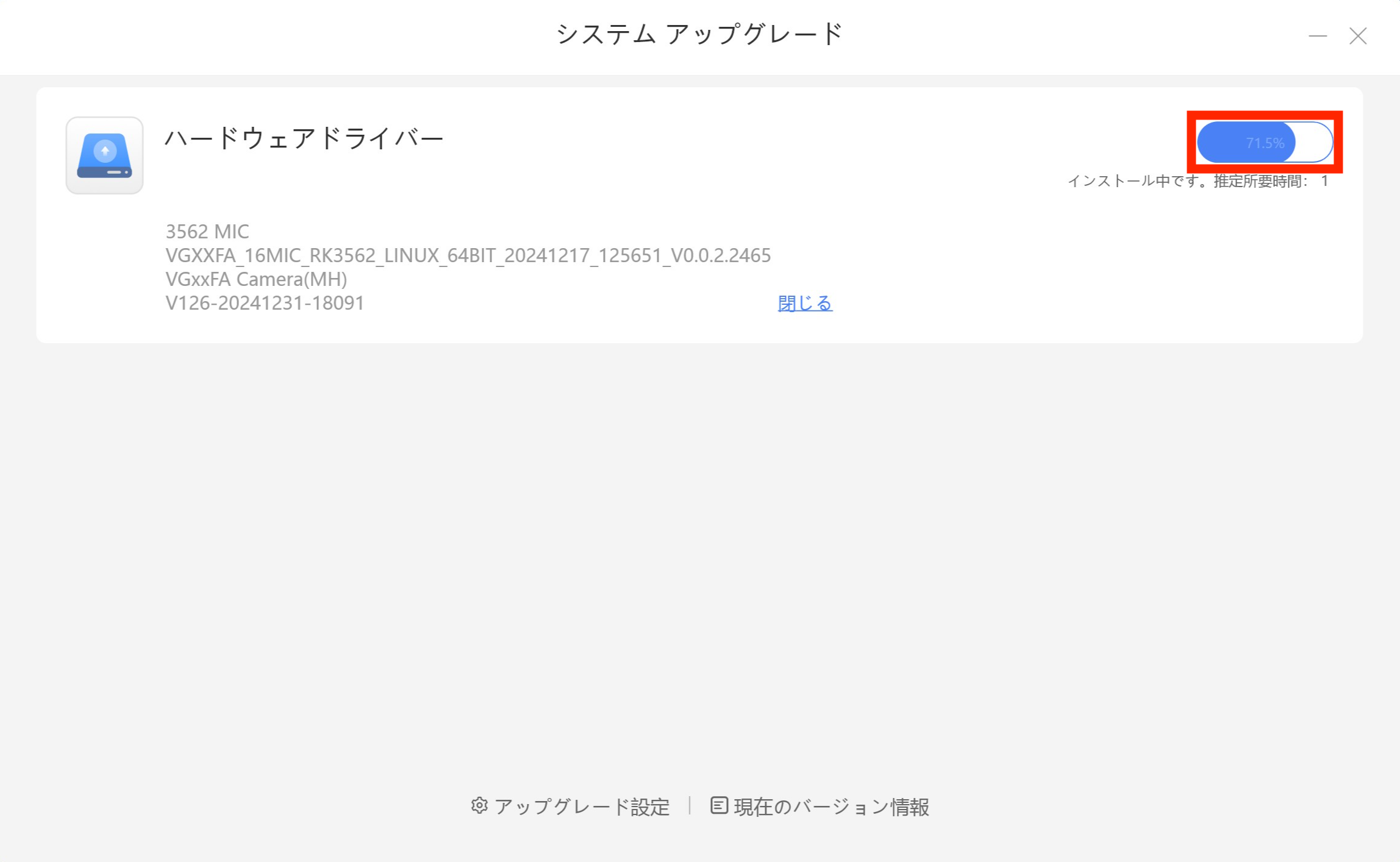 アップデートが正常に完了せず、マイクとスピーカーが認識されなくなることがあります。その場合、お手数ですが下記の手順書を参考に手動でアップデートをお願いいたします。