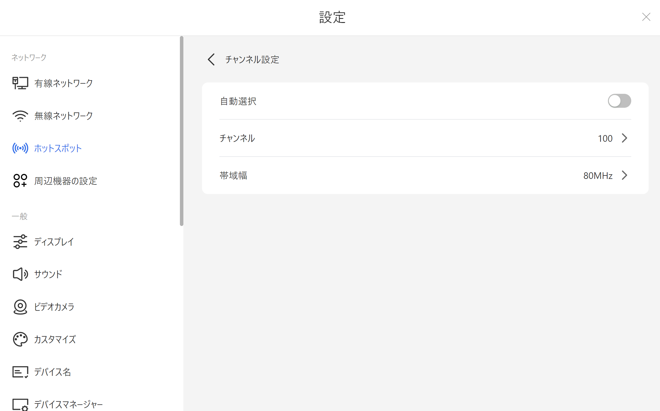 ホットスポットのチャネル、帯域の変更ができるようになりました。
