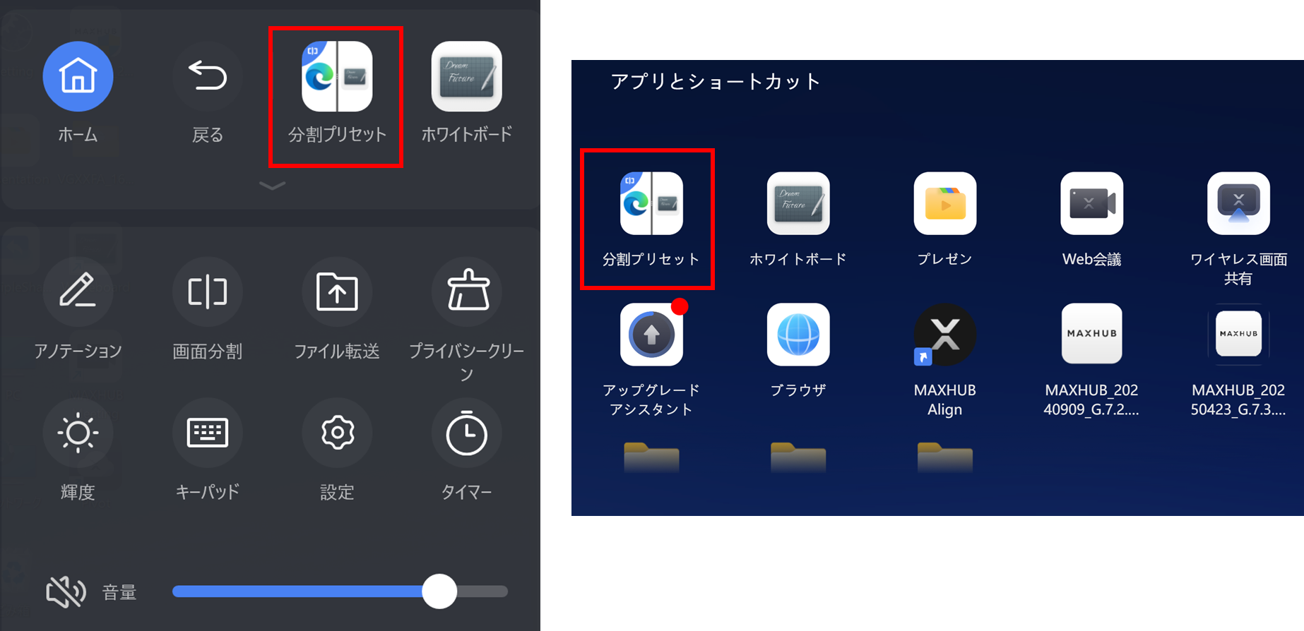 接続されているMAXHUBデバイスにより表記が異なる場合があります。