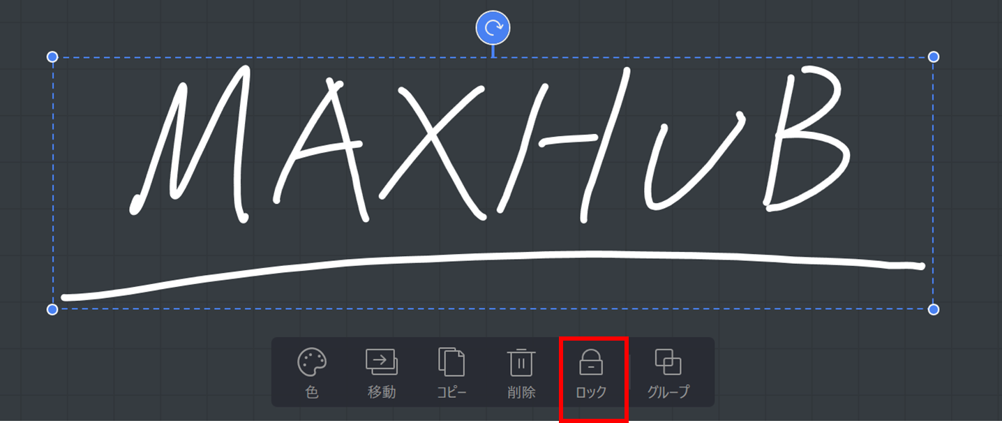 書き込んだ文字や図形を選択した際にロックができるようになりました。