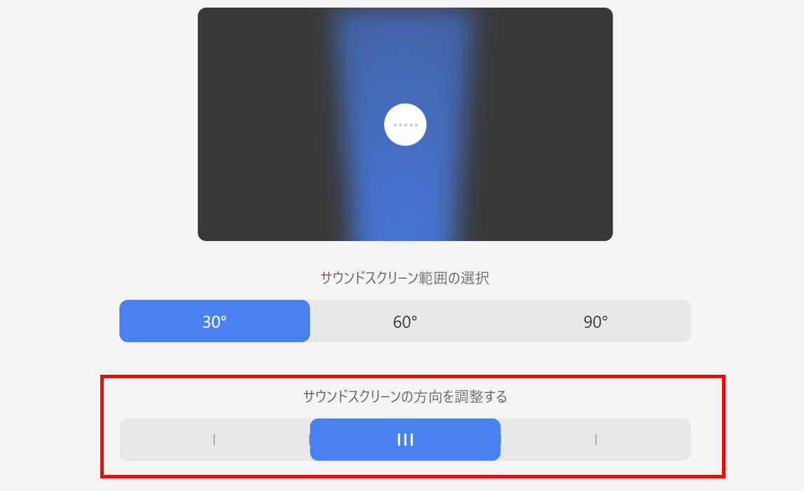 5段階で左右方向の集音範囲の指定が可能です。