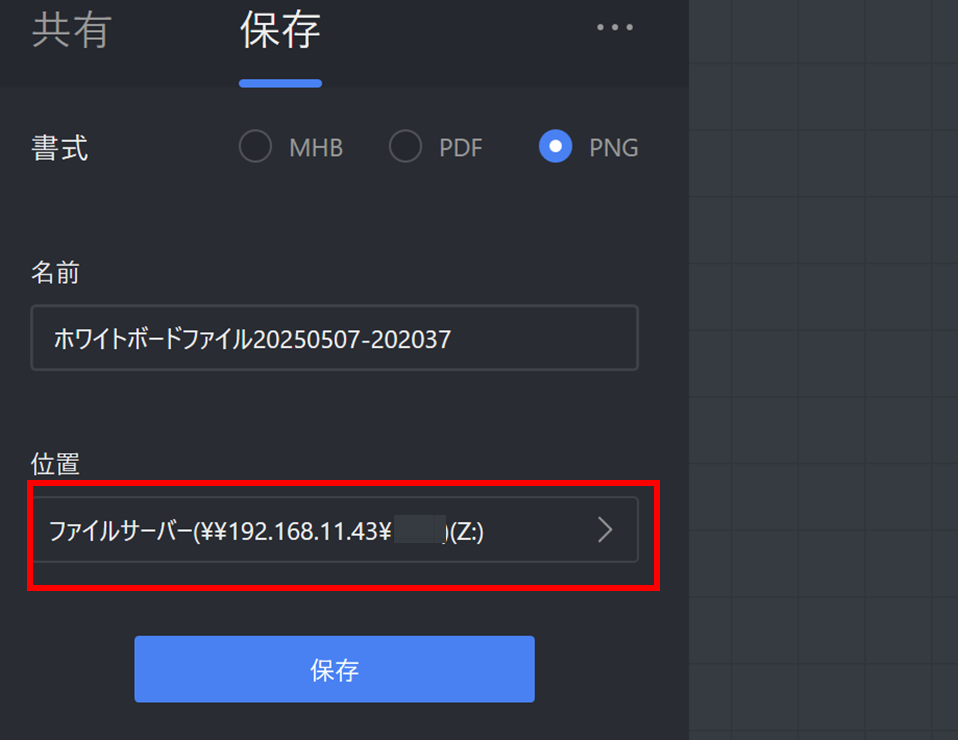 設定後、上図のようにホワイトボードデータの保存先をNASに直接指定することができます。