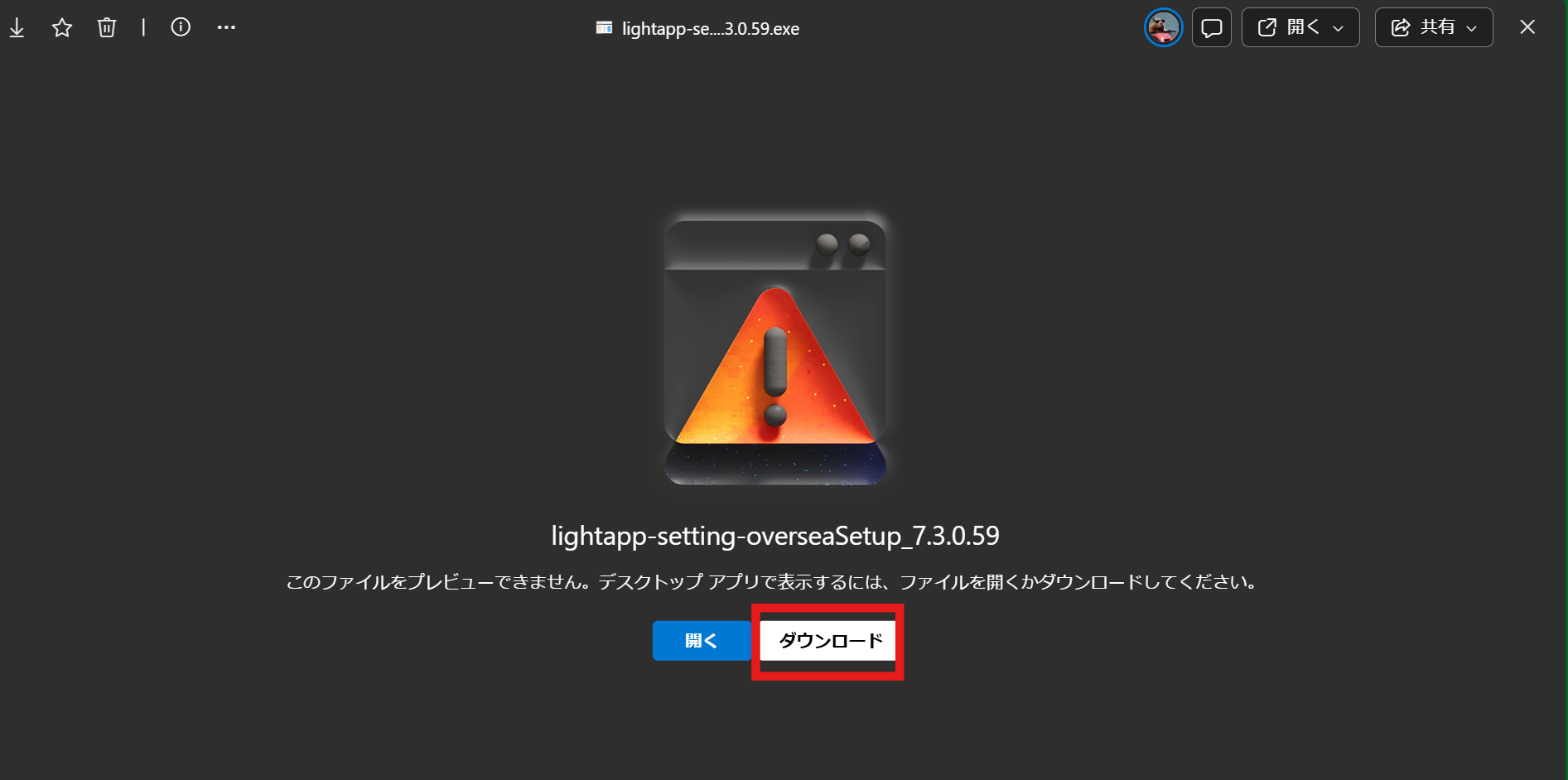 lightapp-setting-overseaSetup_7.3.0.59を長押し(右クリック)して「管理者として実行」をタップします。