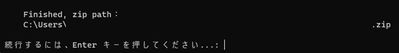 ログの収集が完了すると、下図の画面が表示されます。Enterキーを押すとウィンドウが閉じます