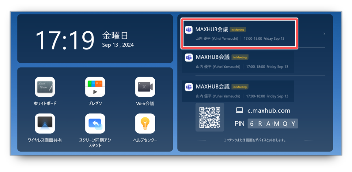 Microsoft リソースアカウントの会議予定をホーム画面に表示できます。