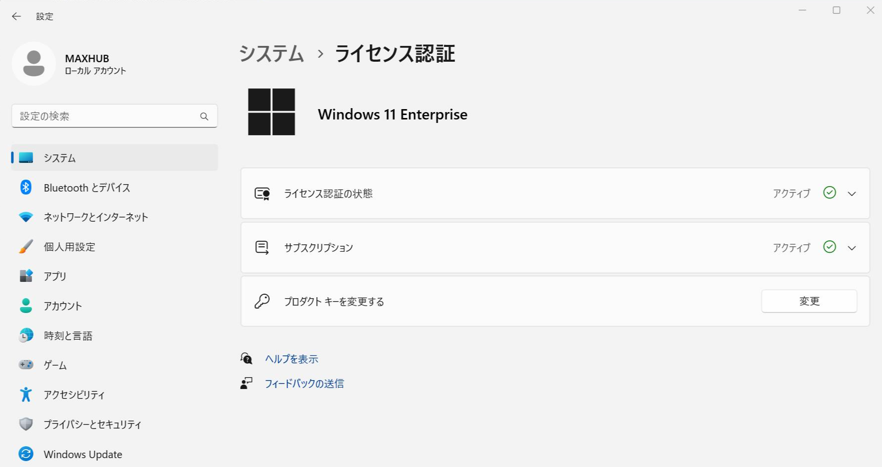 下記のように「ライセンス認証の状態」が「アクティブ」となっていれば正常にライセンスのアクティベーションが成功しています。