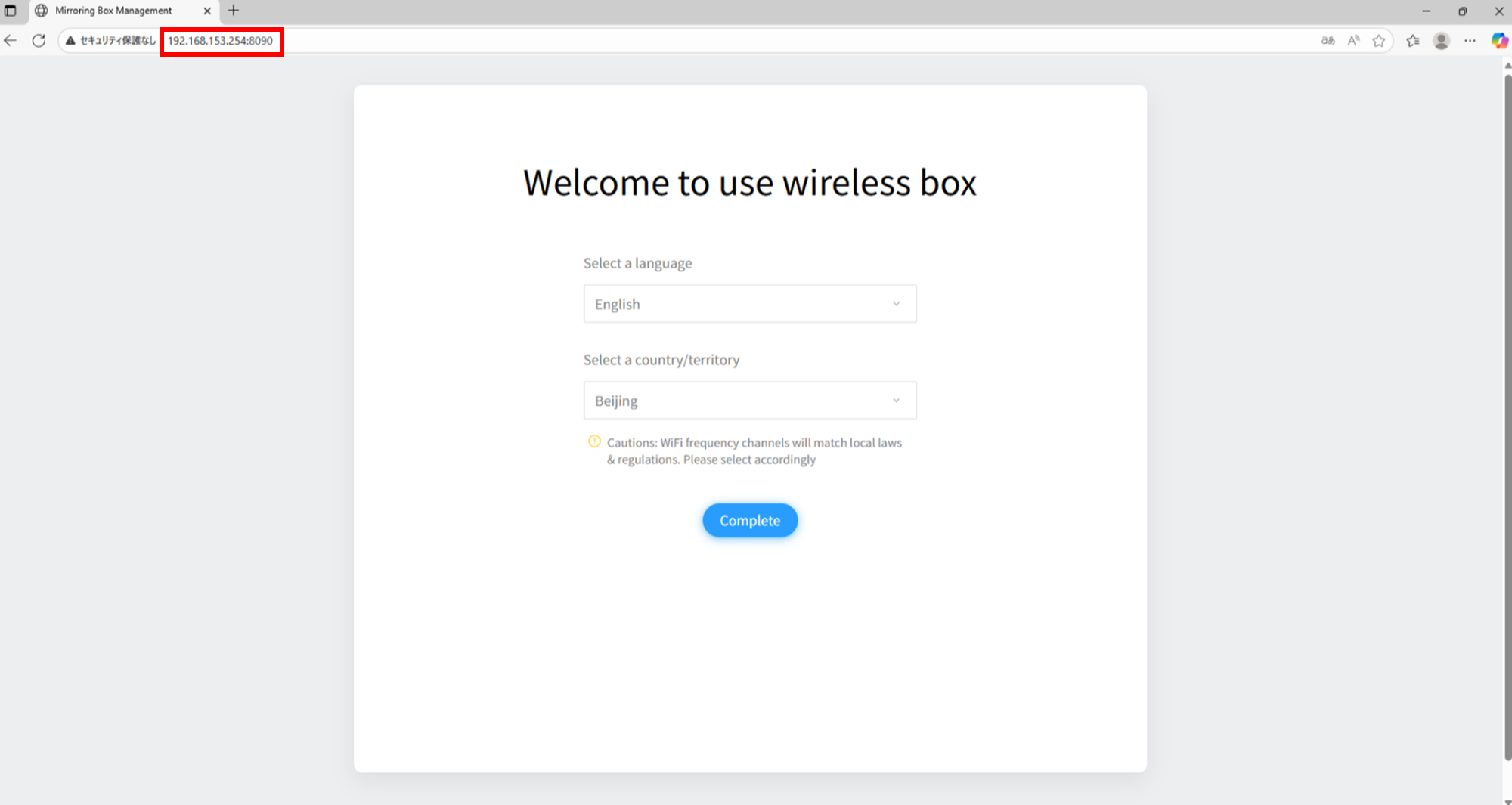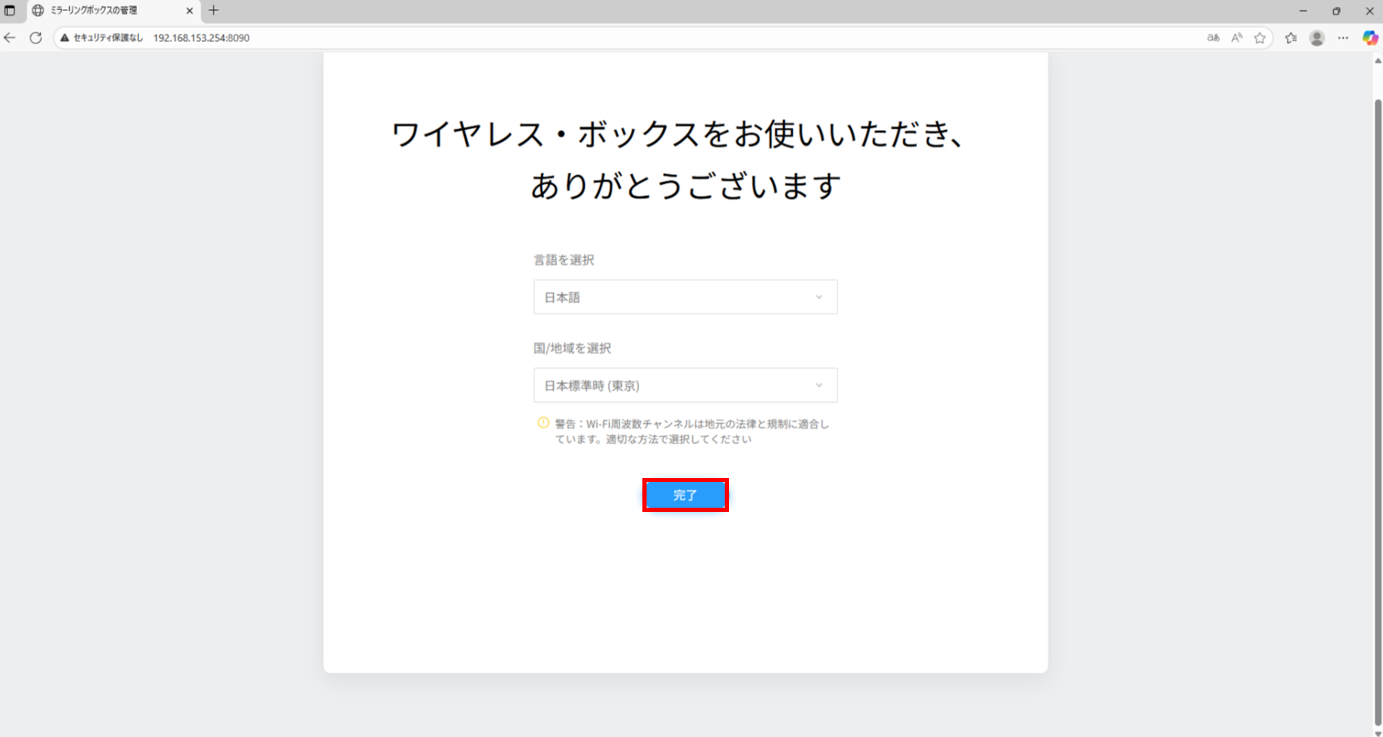 言語を選択:日本語、国/地域を選択:日本標準時(東京)を選択し、「完了」をクリックします。