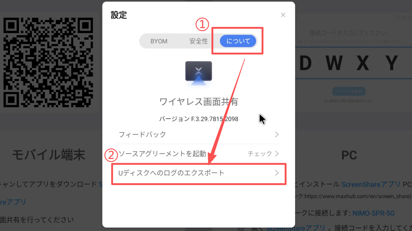 MAXHUB側のログと同じようにこちらからログをアップロードしてください