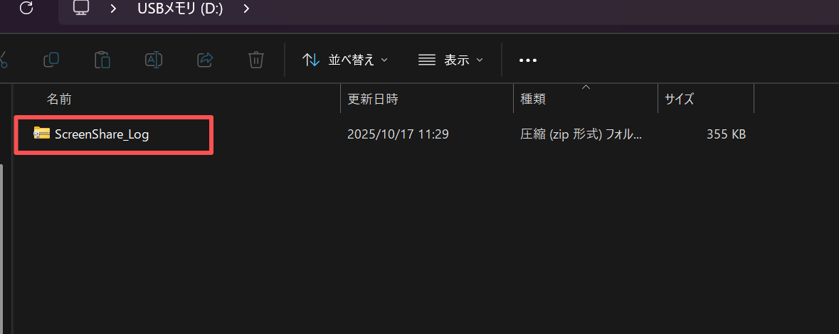 ログのエクスポートを実行すると、デスクトップ画面にログが生成されます。