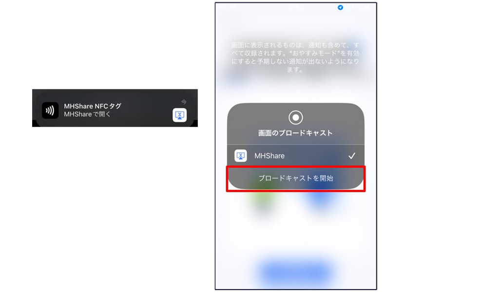 ⑤ 「ブロードキャストを開始」をタップすると、画面共有が開始します。