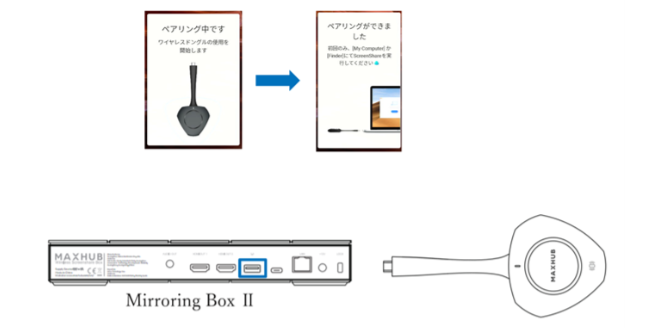 ペアリング中は下記の画面が表示されます。ペアリングが完了するまで、ワイヤレスドングルを取り外さずにお待ちください。