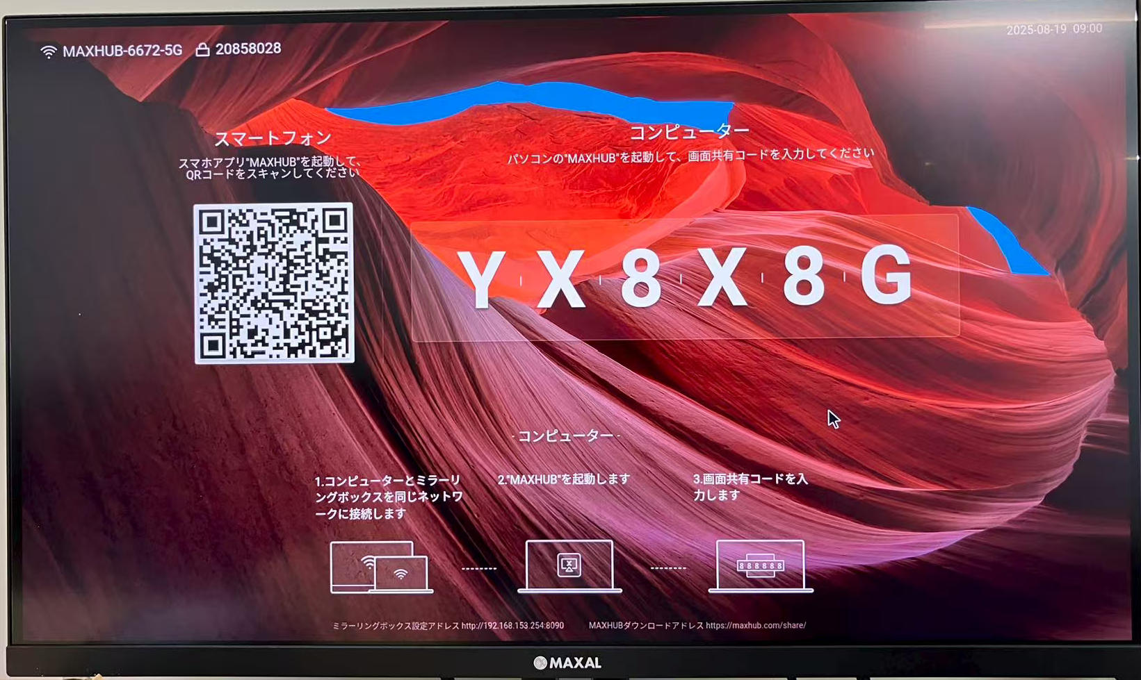 ワイヤレスドングルまたは専用アプリケーション(以下MAXHUB Share)を使用して、PC・タブレット・スマートフォンの画面を表示できます。最大9画面を同時に表示できます。