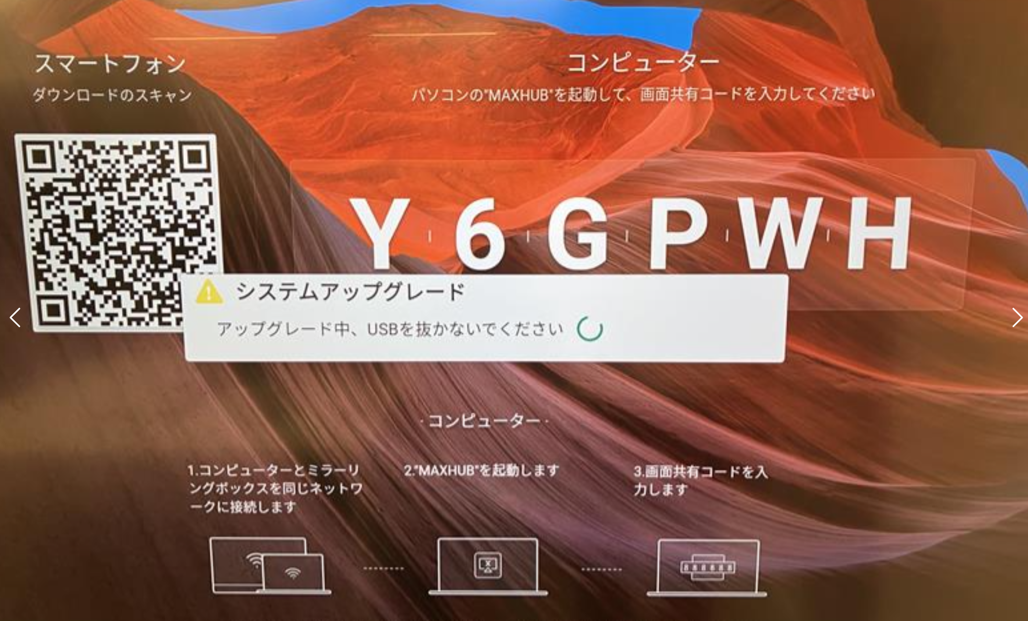 5.本機に電源ケーブルを挿すと、自動で起動しアップデートが始まります。
