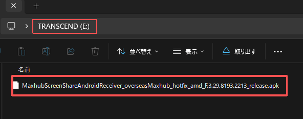 こちら から「MaxhubScreenShareAndroidReceiver_overseasMaxhub_hotfix_amd_F.3.29.8193.2213_release.apk」をダウンロードしてください。