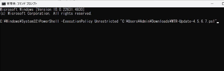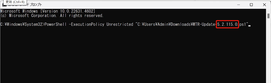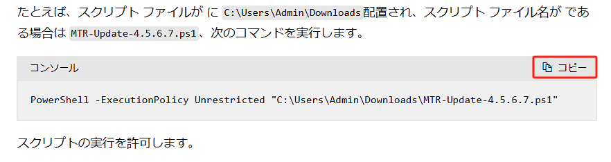 手順 2: スクリプトを実行してTeams Rooms アプリを更新するの下図のスクリプトをコピーします。