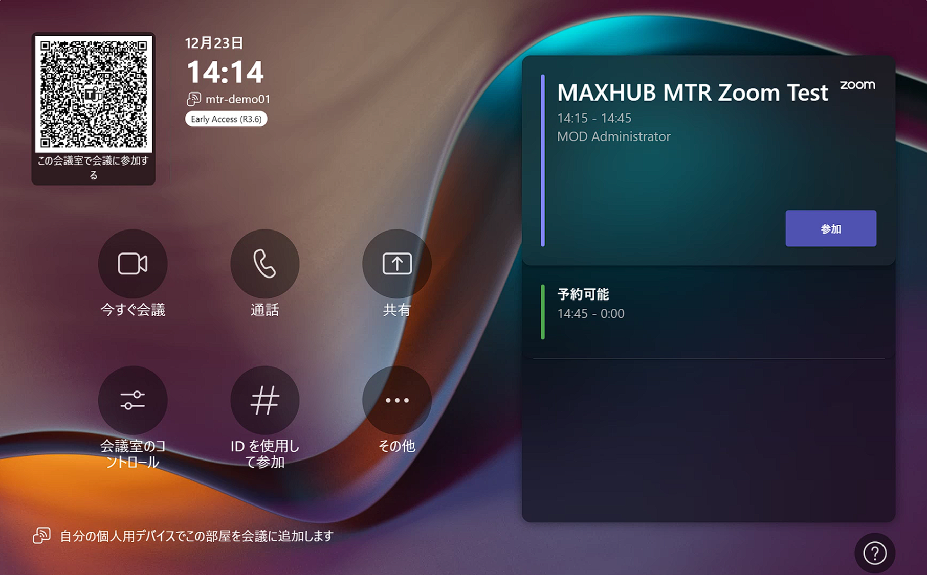 こちらのページを参考に会議情報をTeams Roomsリソースアカウントに送信すると、タッチスクリーンにWEB会議のスケジュールが表示されます