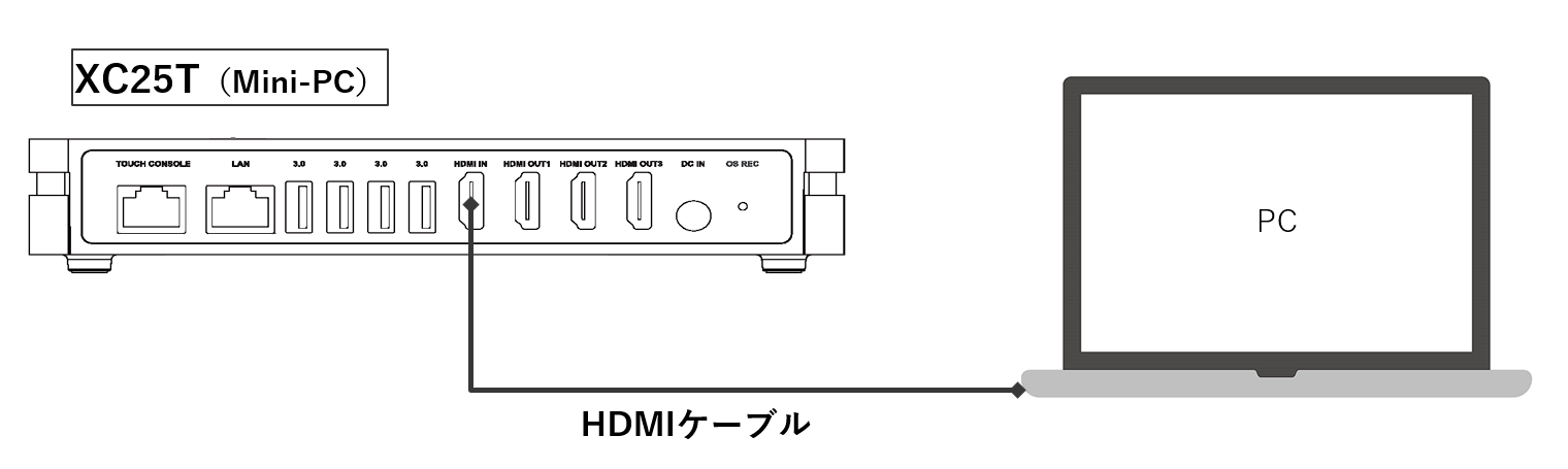 Mini-PCのHDMI INとPCのHDMI OUTをHDMIケーブルで接続します。