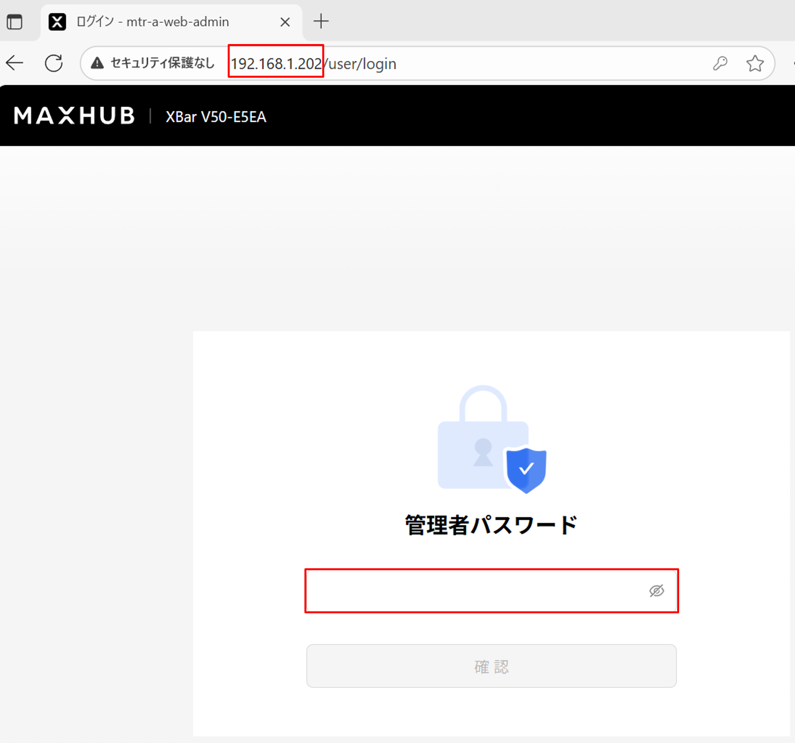 3.PCなどのWEBブラウザにXBarのIPアドレスを入力すると、XBar のプラットフォームが表示されます。初期設定で設定した管理者パスワードを入力してください。