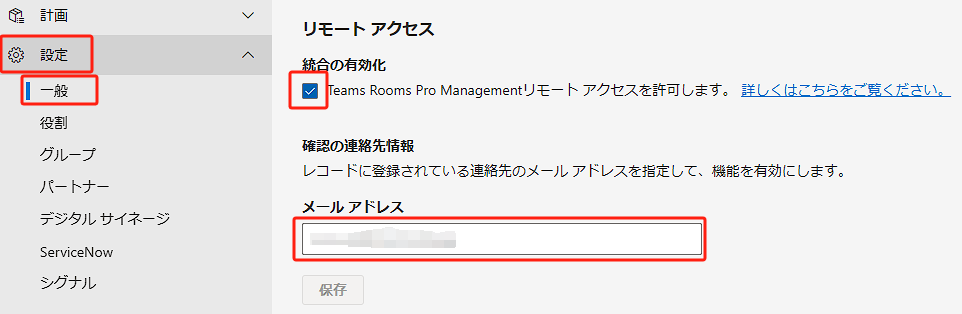 リモートアクセス > 統合の有効化 にチェックを入れます。