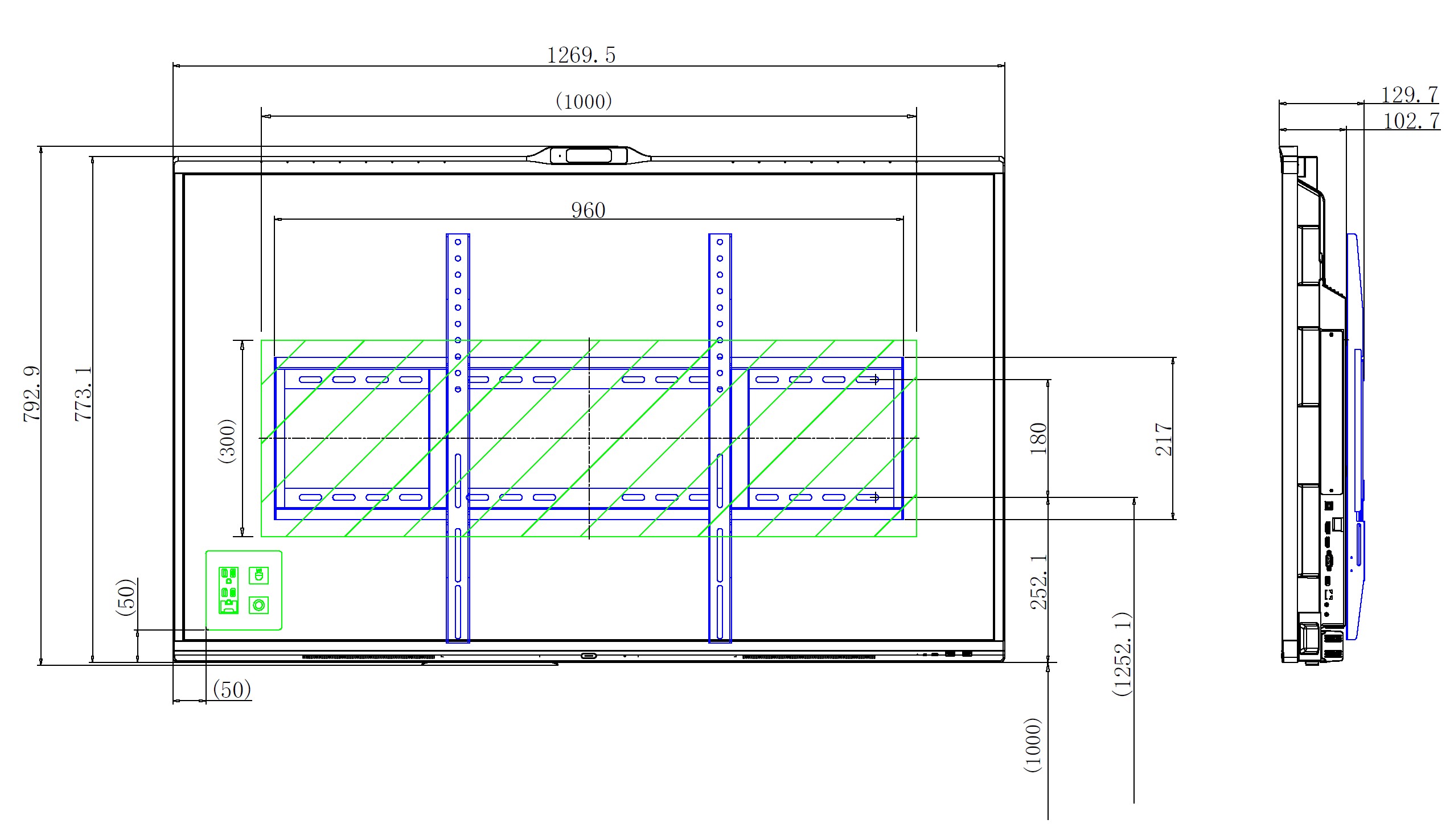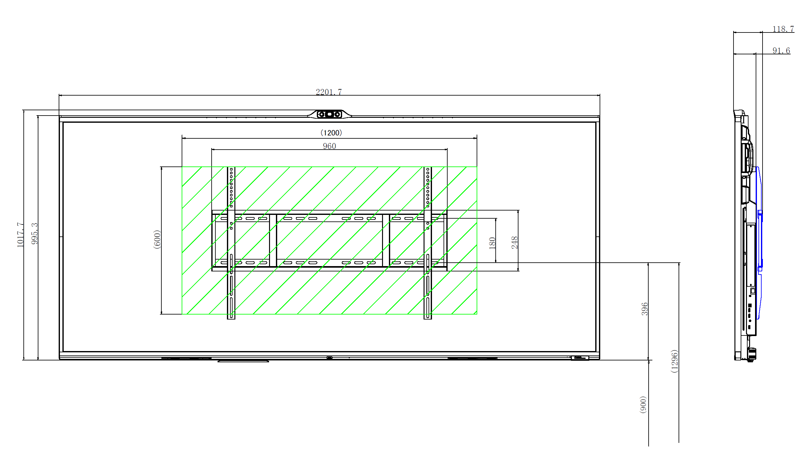 本機と壁掛け金具の重量に耐えられる下地・補強をお客様にてご検討ください。