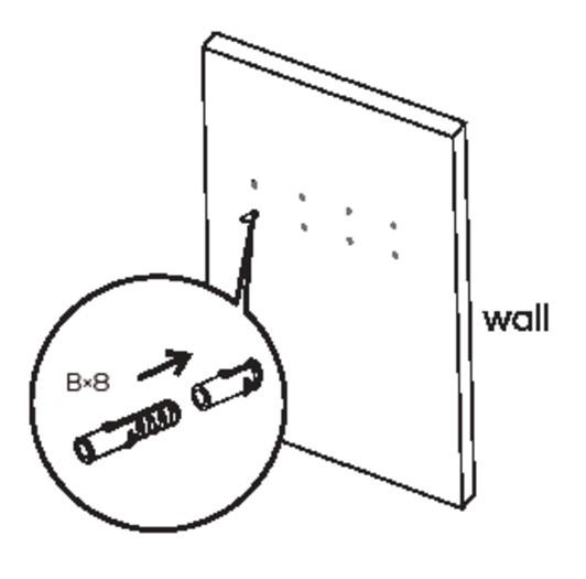 5)下図の通りに、壁掛けフレーム【a】を ネジ【c】、ワッシャー【d】で expansion アンカー 【b】に固定する
