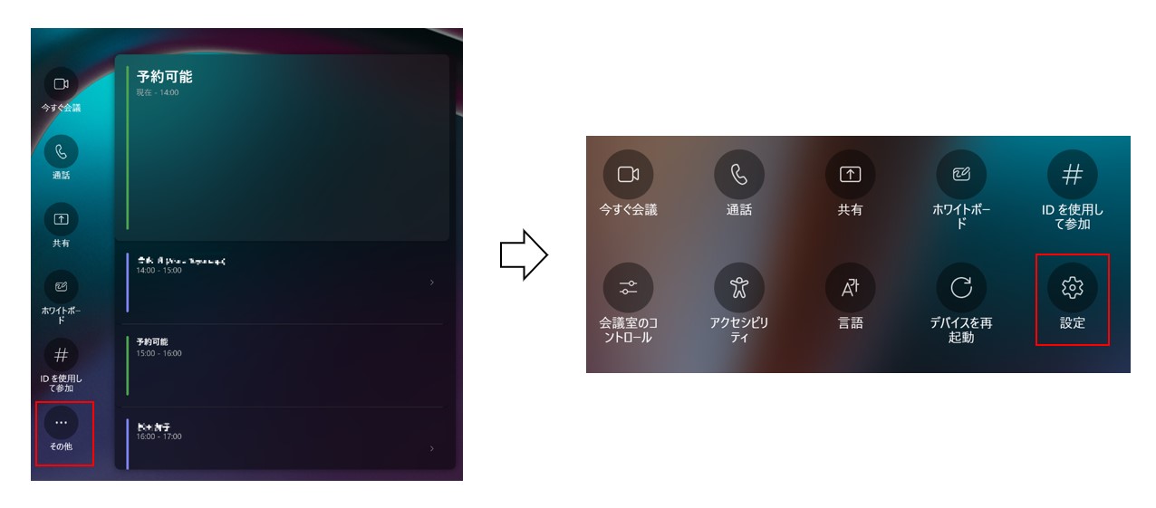 画面メニュー[その他]>[設定]を選択