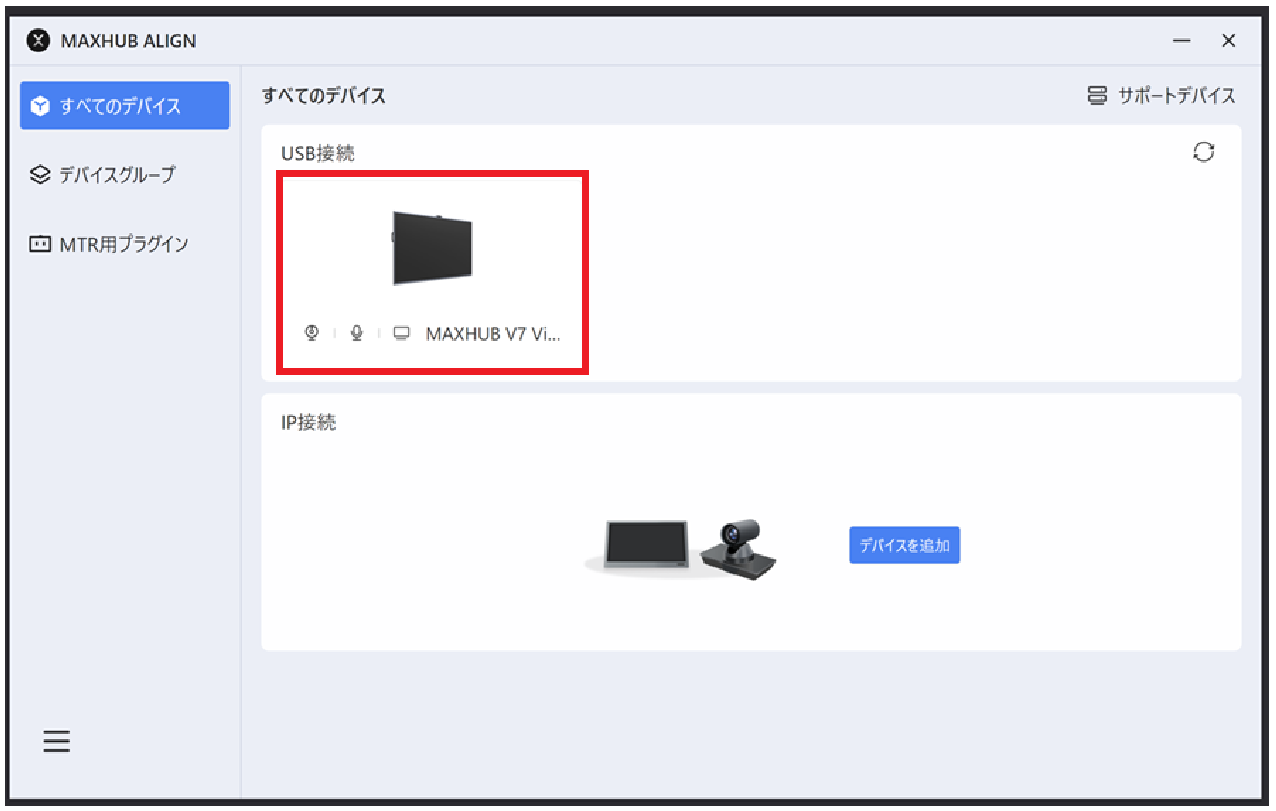 MTR Boardの画像を選択し、ディスプレイやカメラマイク、スピーカー等の設定を行う