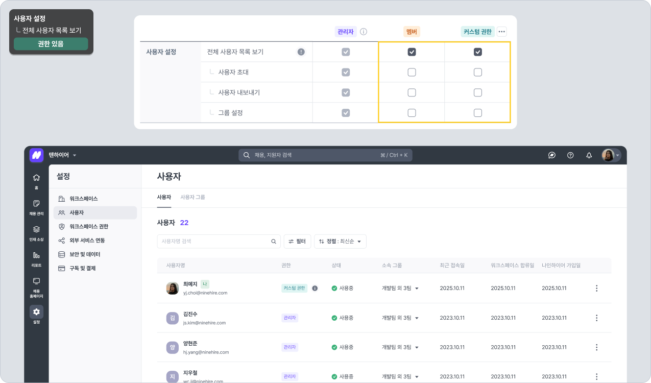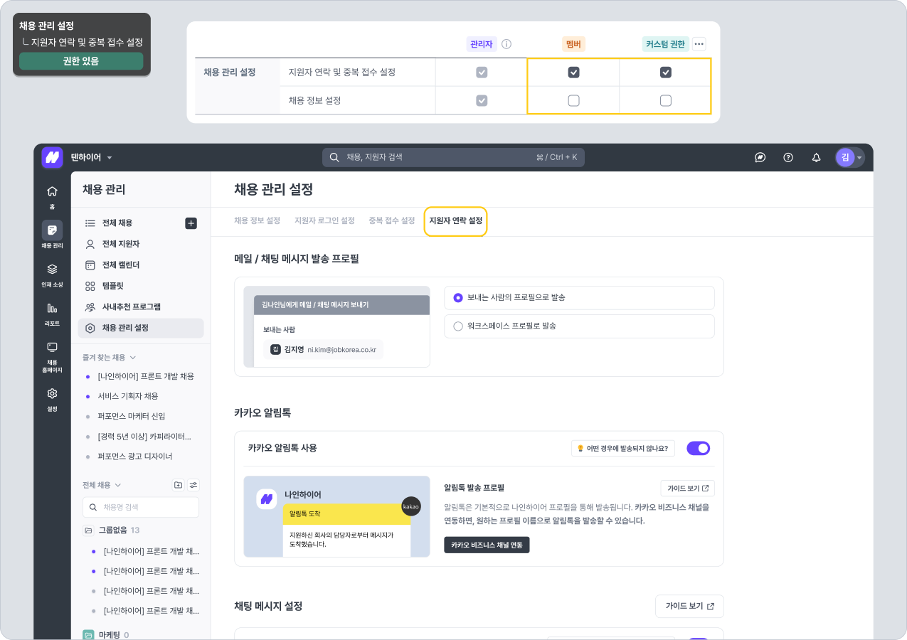 3. 채용 홈페이지나 전체 지원자 메뉴에 사용자를 추가할 때 → 각 계정별 권한 부여하기