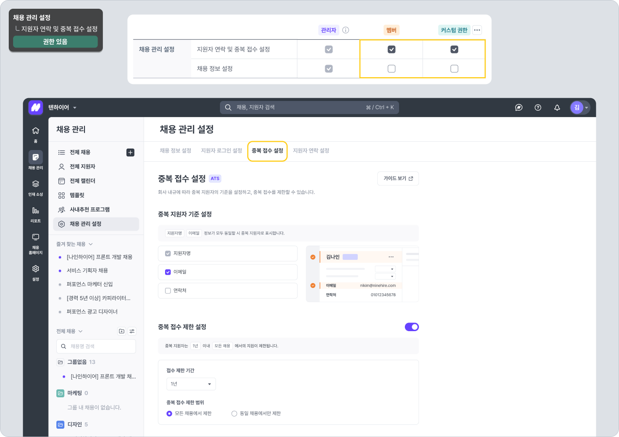 • 채용 만들기 권한을 부여해야 채용 복사하기 권한 부여도 가능합니다.