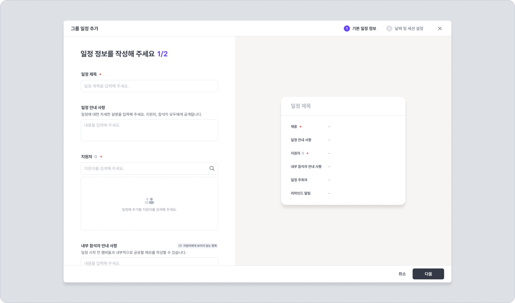 일정 안내 사항 : 지원자가 일정 선택 창에서 확인할 수 있는 설명글을 작성합니다.