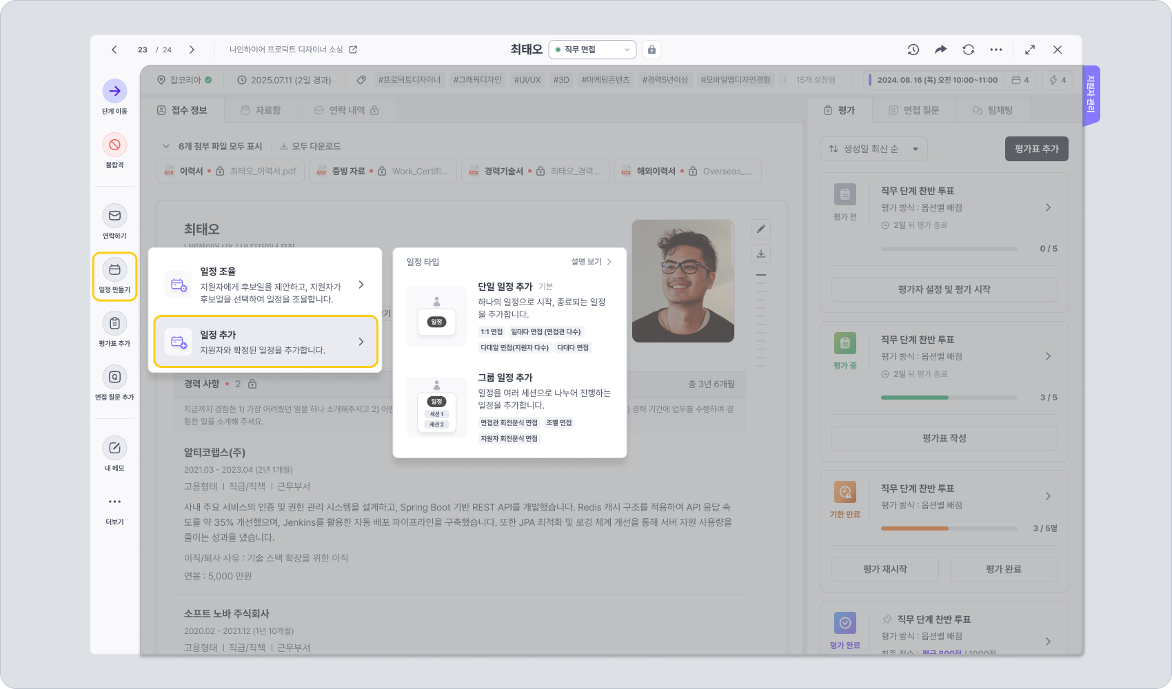 ■ 일정 추가 경로 1 : 지원자 상세 화면 > 일정 만들기 > 일정 추가