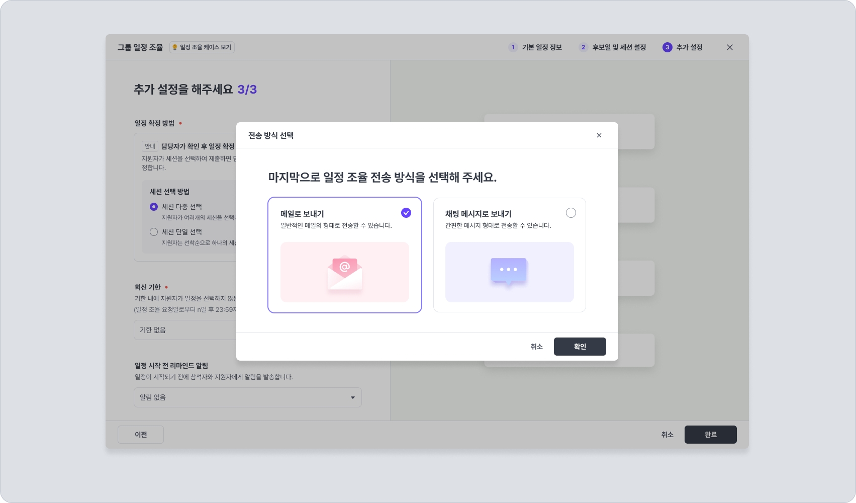 마지막으로 일정 조율 전송 방식을 선택합니다.