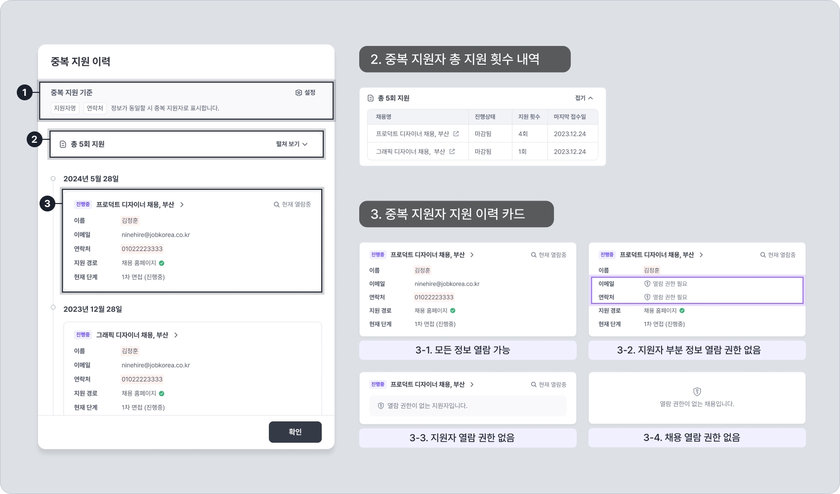 중복 지원 이력이 있는 채용의 열람 권한