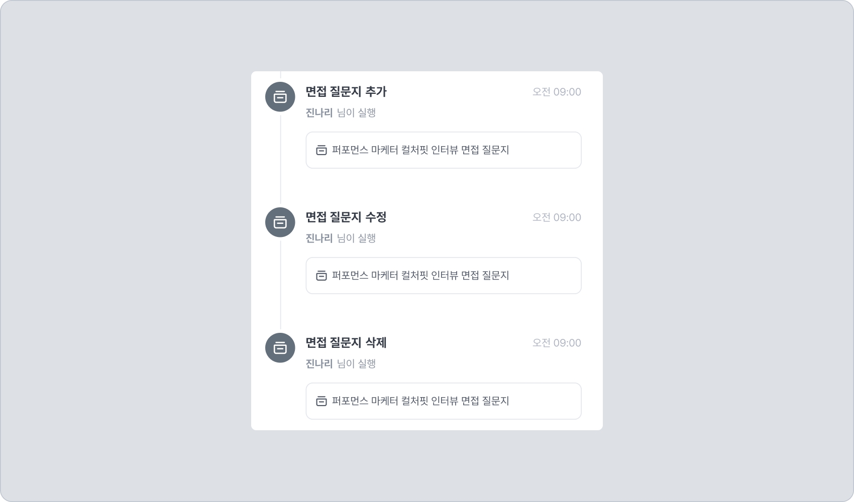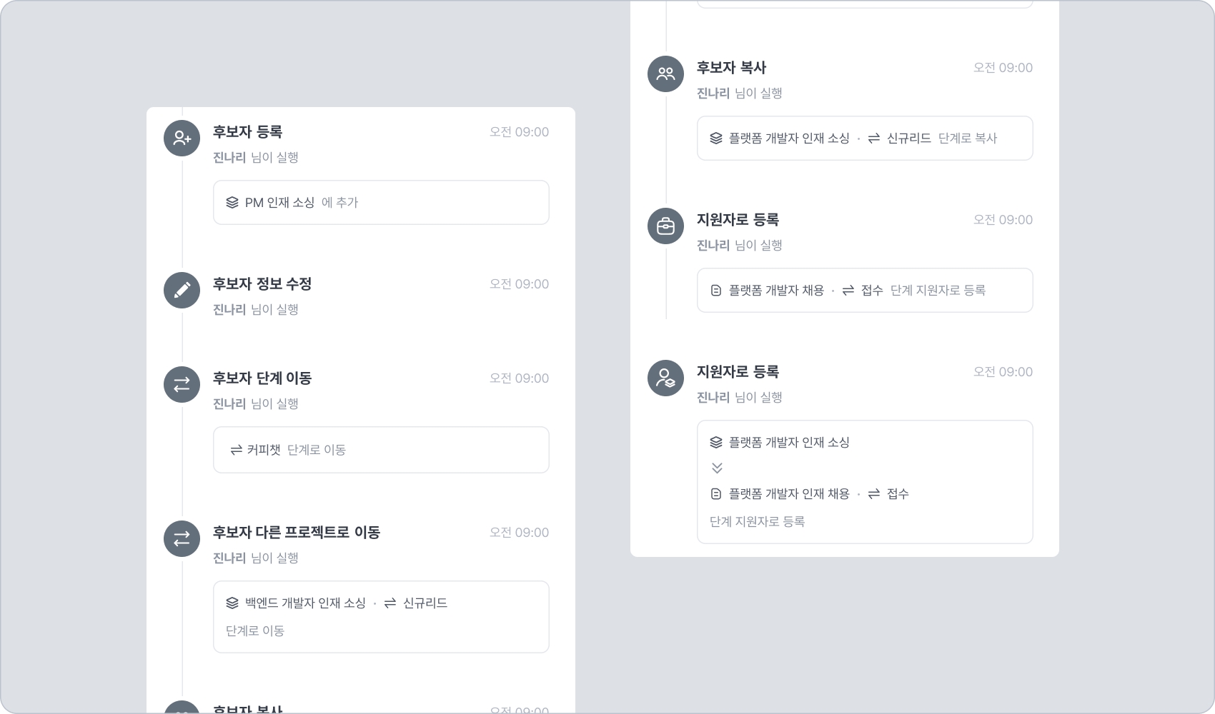 지원자 상세 화면 메인 헤더 중 활동 내역 부분에 대한 안내입니다.