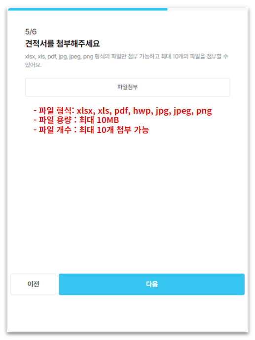 공정별 상세 견적 필수 기재