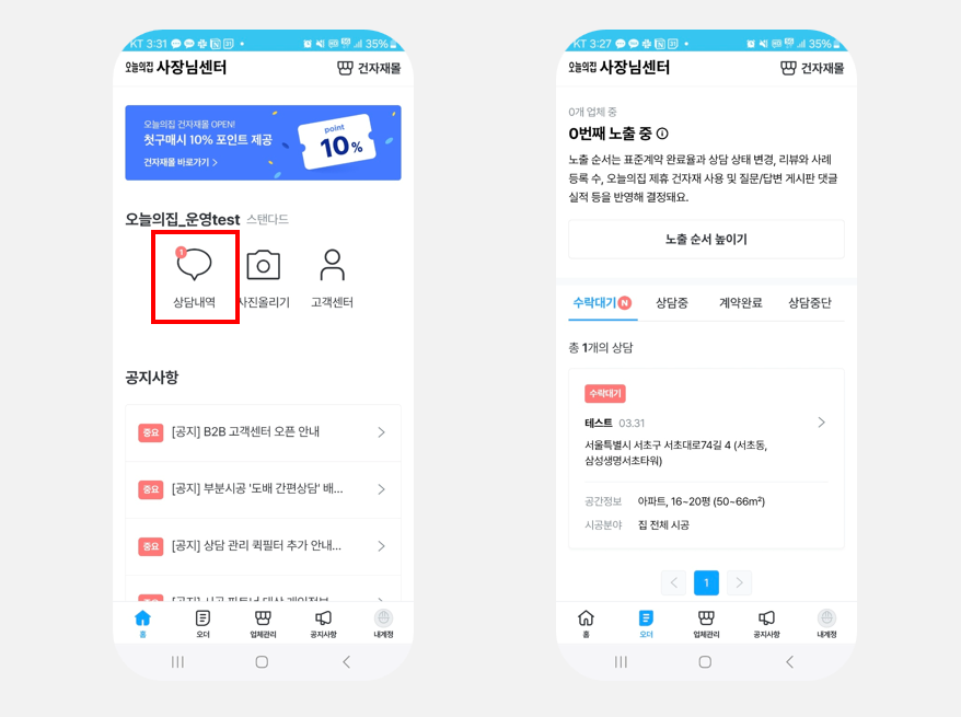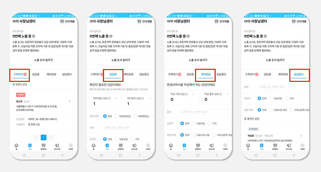 사장님센터에서 상담(오더)을 직접 관리합니다.