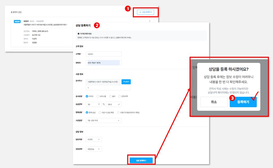 대면 상담 진행하기 전에는 개인정보보호법에 의거해 고객님의 연락처가 안심번호로 노출이 됩니다. [대면 상담 진행하기] 클릭 시 고객님 연락처가 노출됩니다.