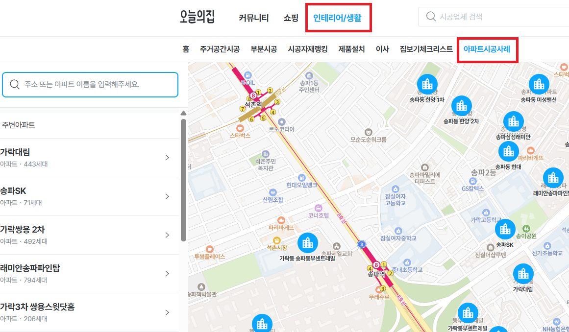 아파트 시공사례는 별도의 등록절차가 없이 시공사례를 등록하면 자동으로 연동이 가능합니다.