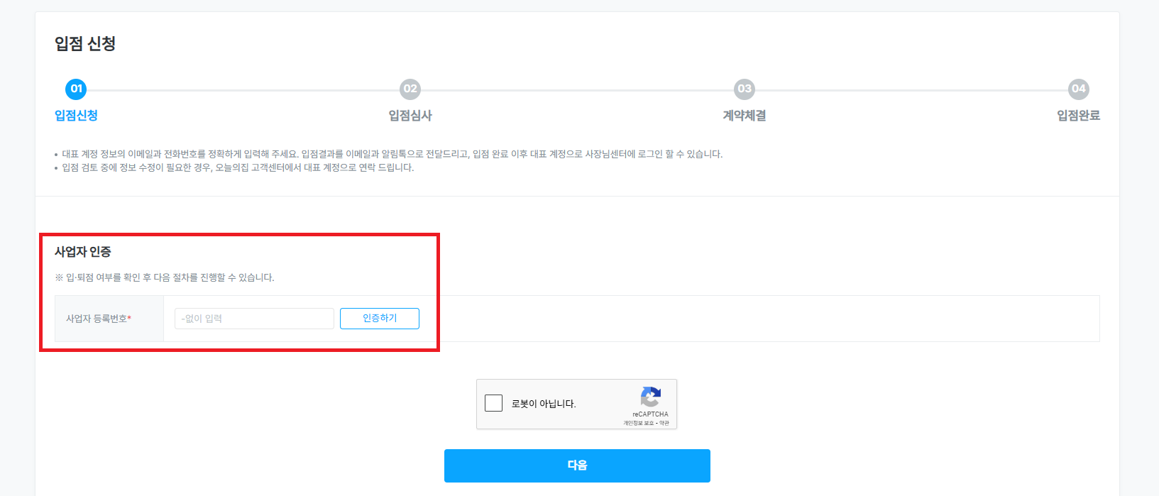사업자 등록번호 입력 후 사용자를 인증합니다.