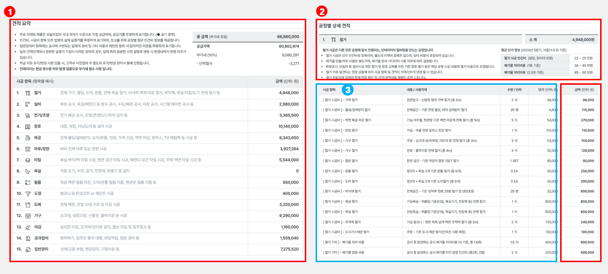 ① 시공비 - 자재, 인건비 등 모든 항목 포함