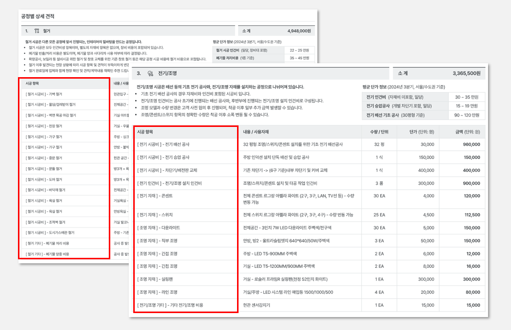 - 예 : 전기/조명 설치 인건비