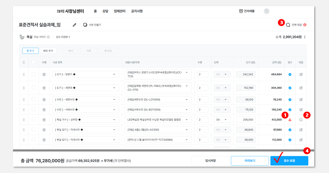 ④ 검수요청 버튼