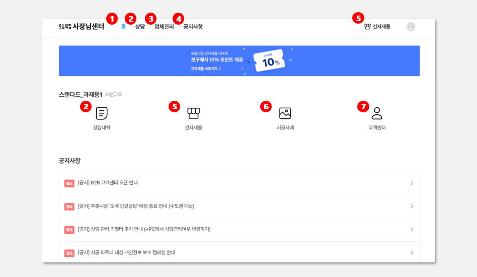 ⑤ 건자재몰 : 건자재몰 페이지로 이동가능한 기능입니다.