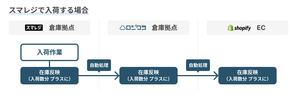 スマレジ連携に加えてShopify連携をご利用の場合、スマレジ入荷時にShopifyの在庫数を増やすこともできます。