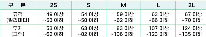 감귤 사이즈 기준