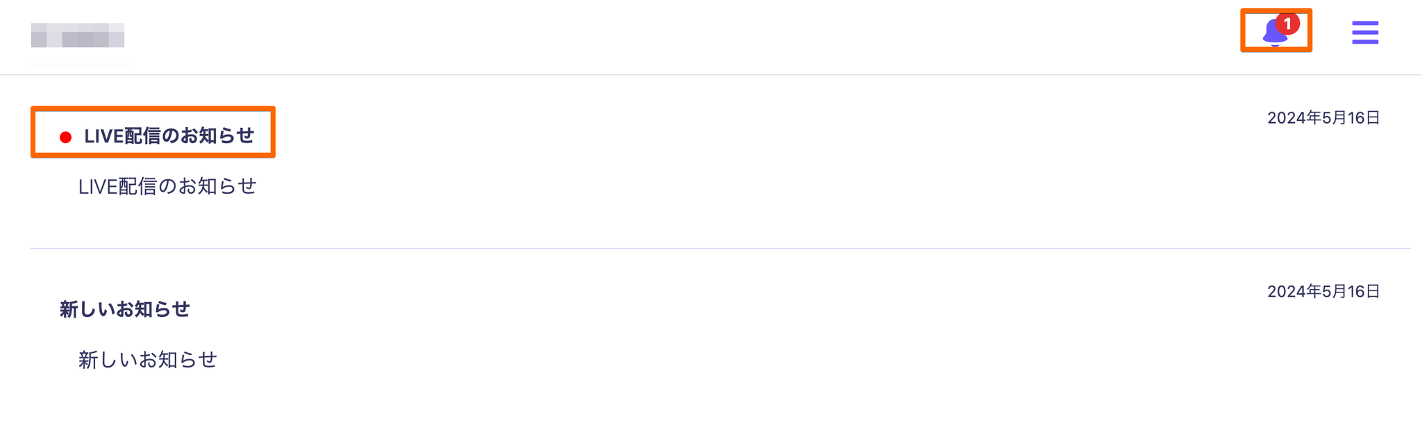 新しいお知らせを配信すると右上のベルマークに未読数が表示されます
