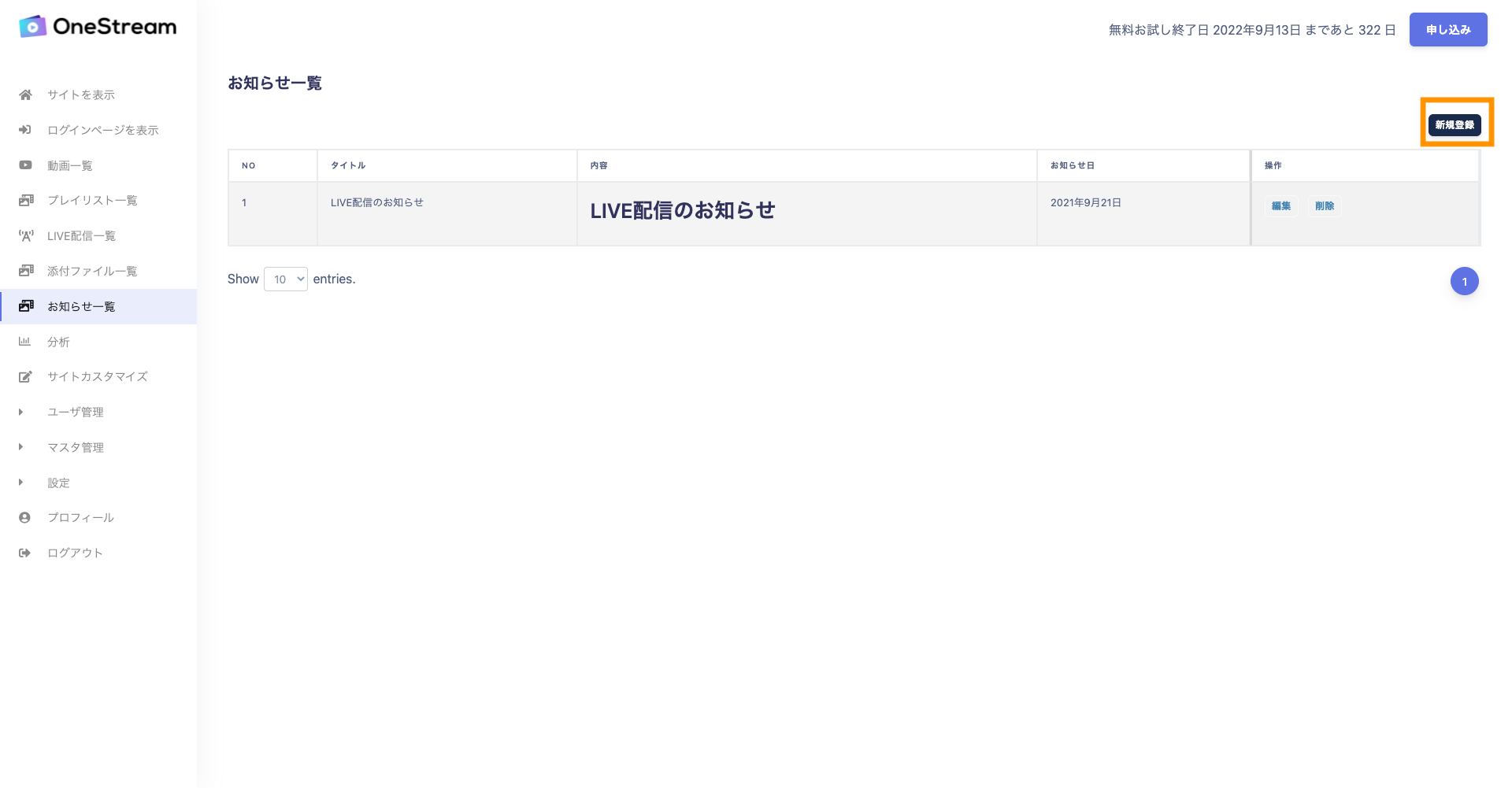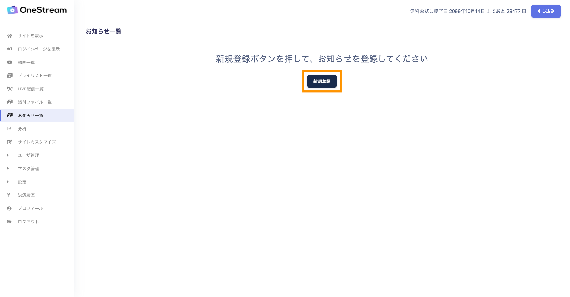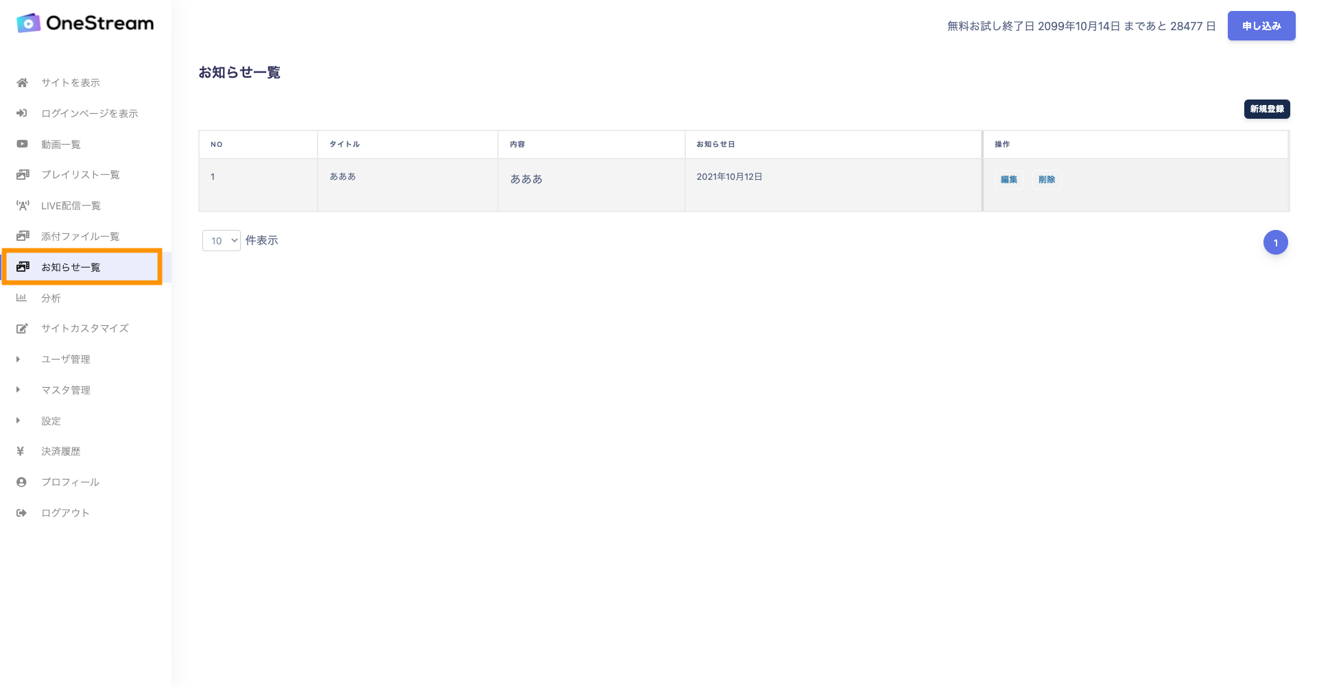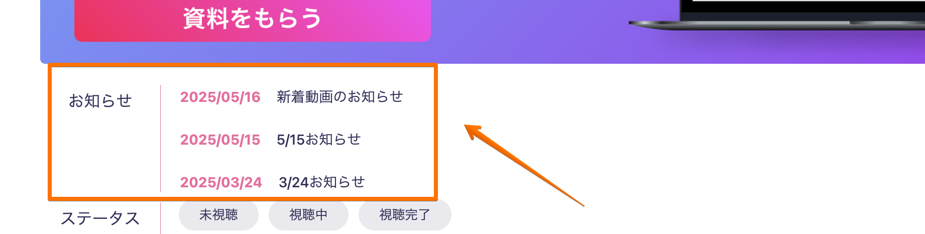 作成したお知らせは会員サイトのお知らせ表示画面で表示されます