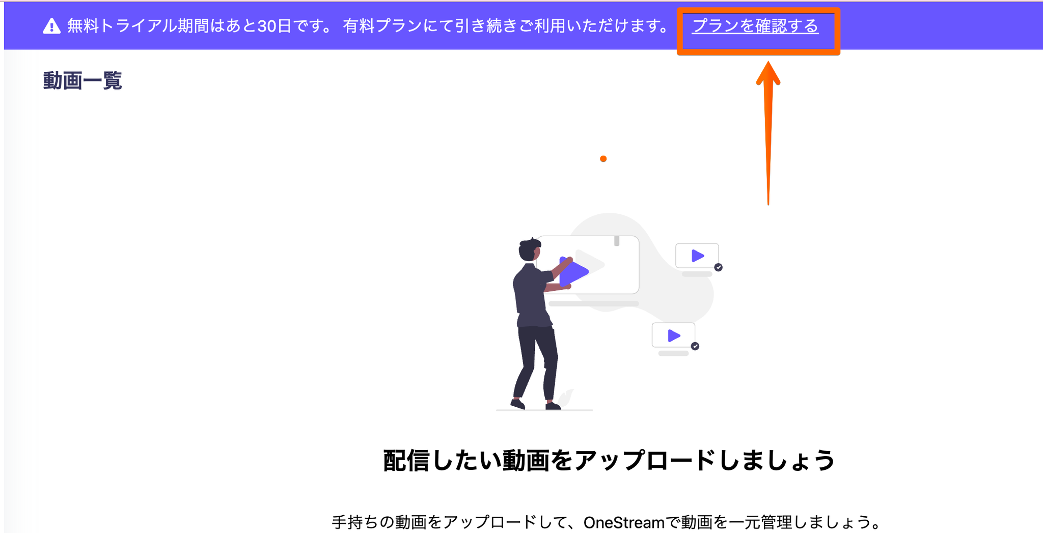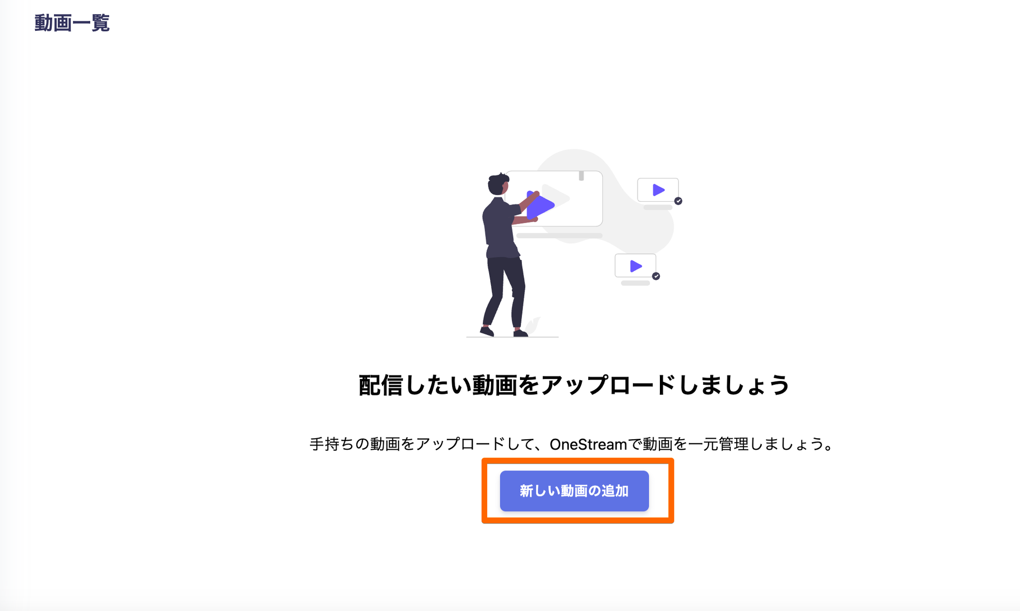 アカウント作成が完了したら、配信する動画をOneStreamにアップロードします。