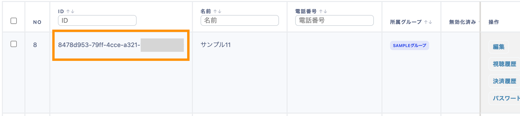 下記オレンジ枠のIDをCSVの「group_ids」に貼り付け、