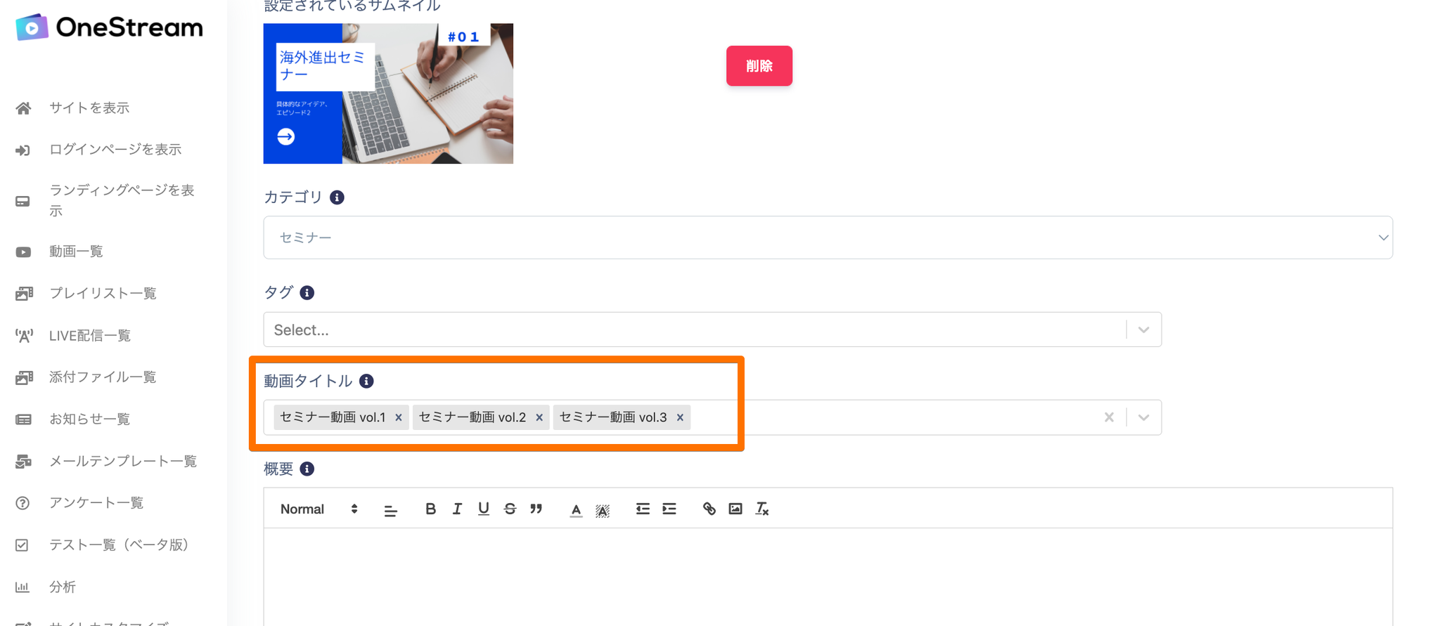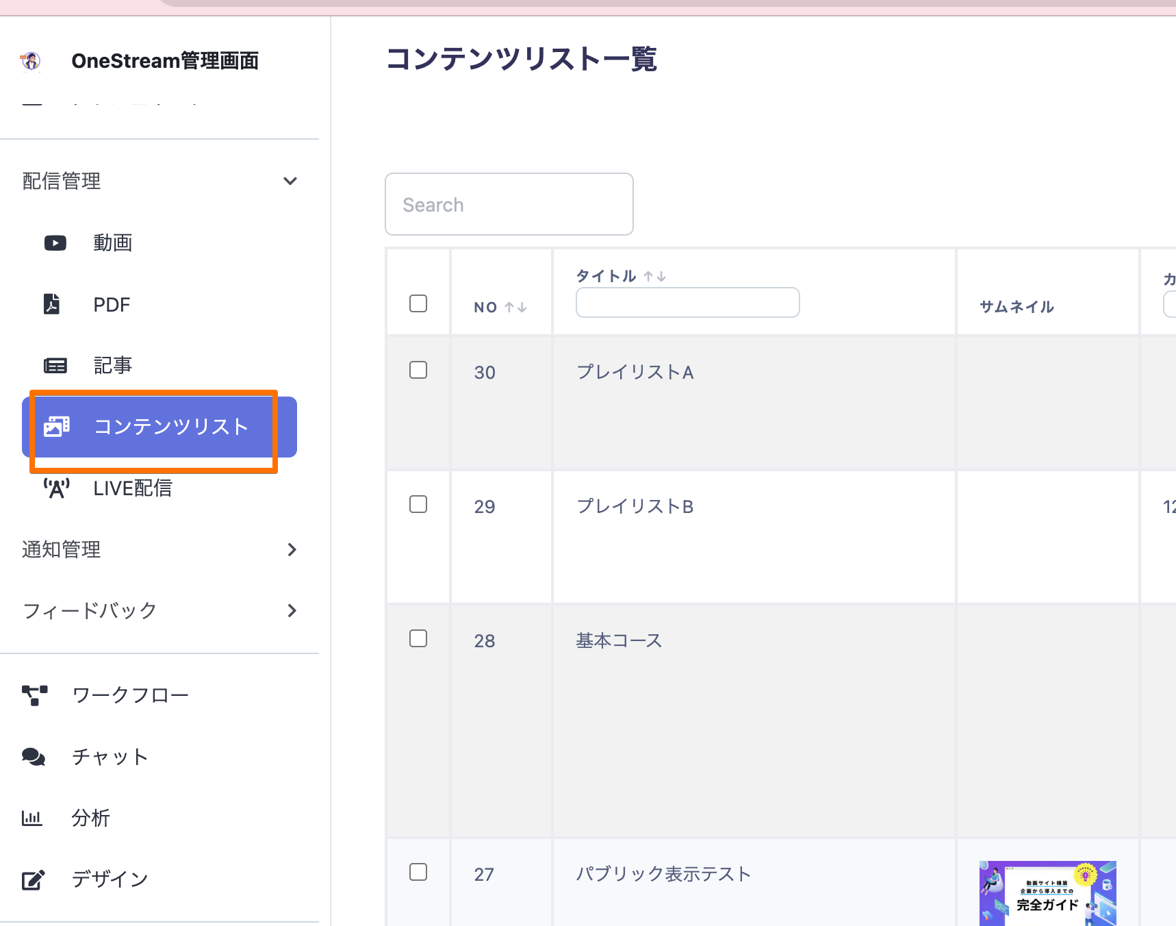 •サムネイル:コンテンツリストのサムネイル画像を選択してください